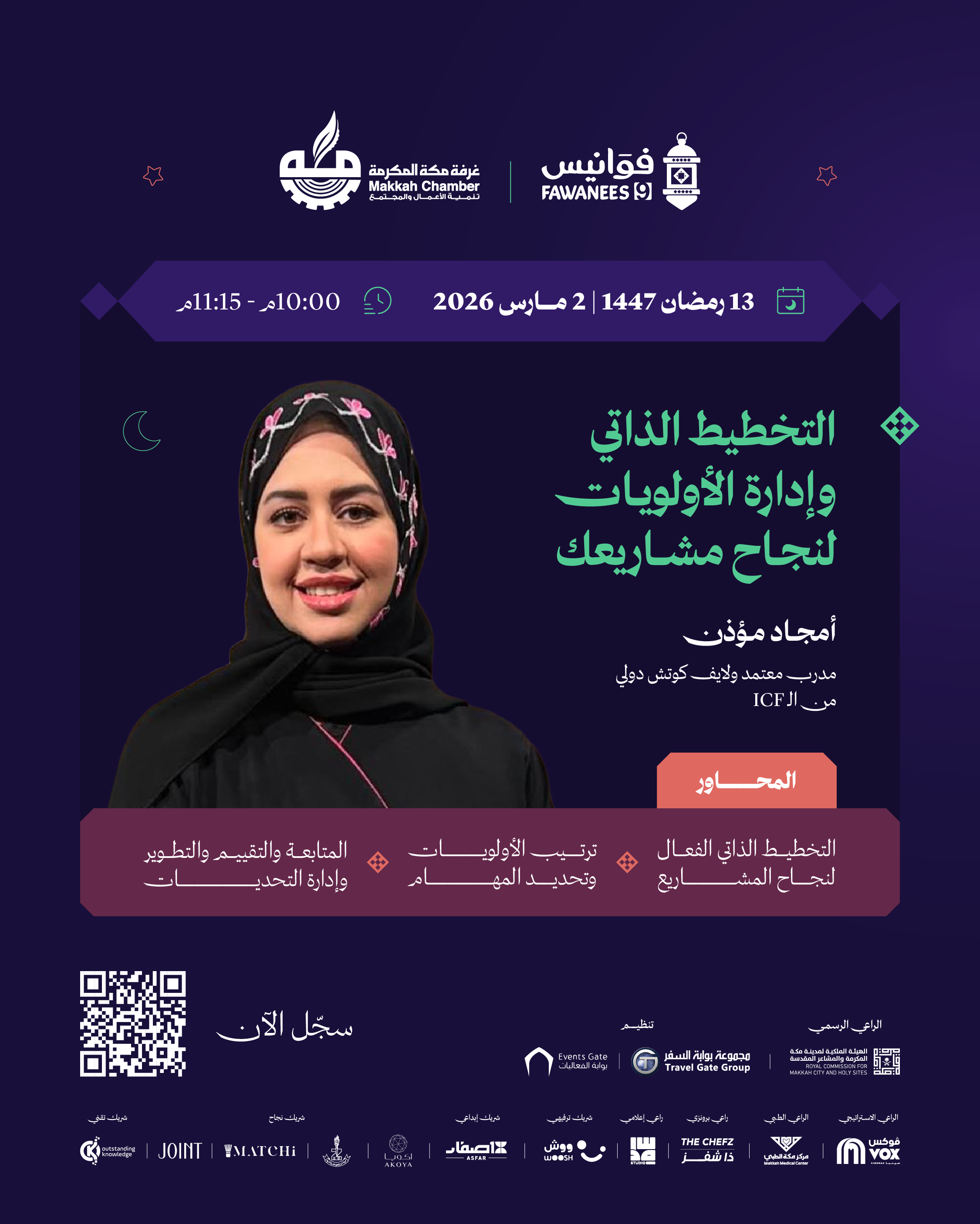 "* التخطيط الذاتي الفعال لنجاح المشاريع * ترتيب الأولويات وتحديد المهام. * المتابعة والتقييم والتطوير وإدارة التحديات."